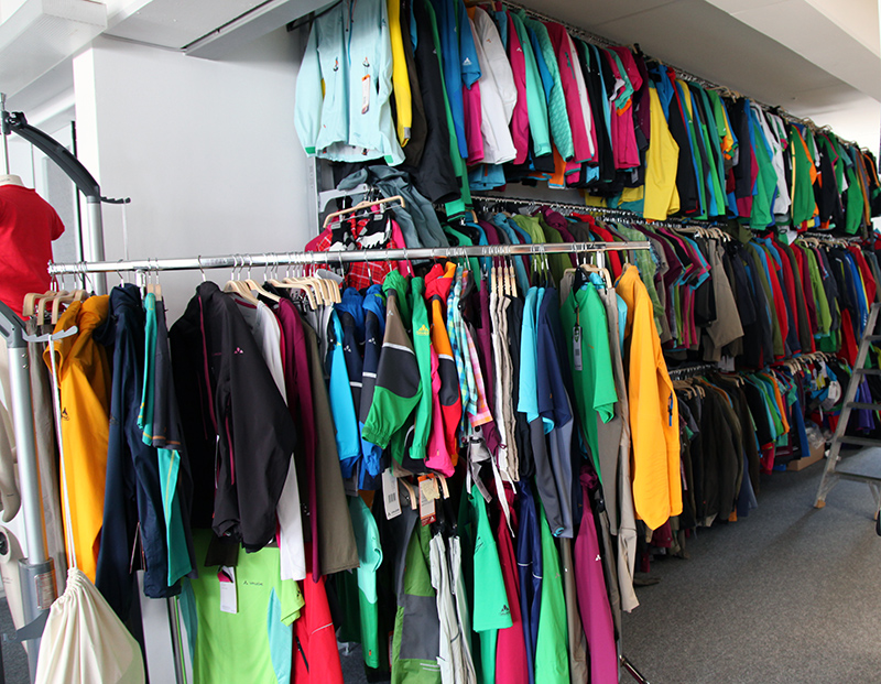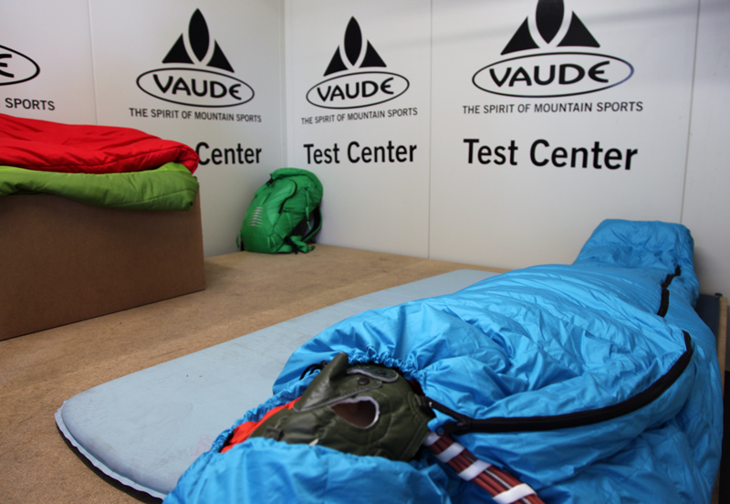 Neben der Sitzung führte uns VAUDE natürlich auch durch die Büros, Lager und den Laborbereich. Letzterer beherbergt unter anderem ein Klimakammer. Bei Temperaturen von bis zu -25 Grad werde neue Jacken und Schlafsäcke getestet. Zum Einsatz kommt dabei eine verkabelte Puppe, die Angaben zu Körpertemperatur und Auskühlungsgrad liefert. Beeindruckend ist auch die Produktionsabteilung.