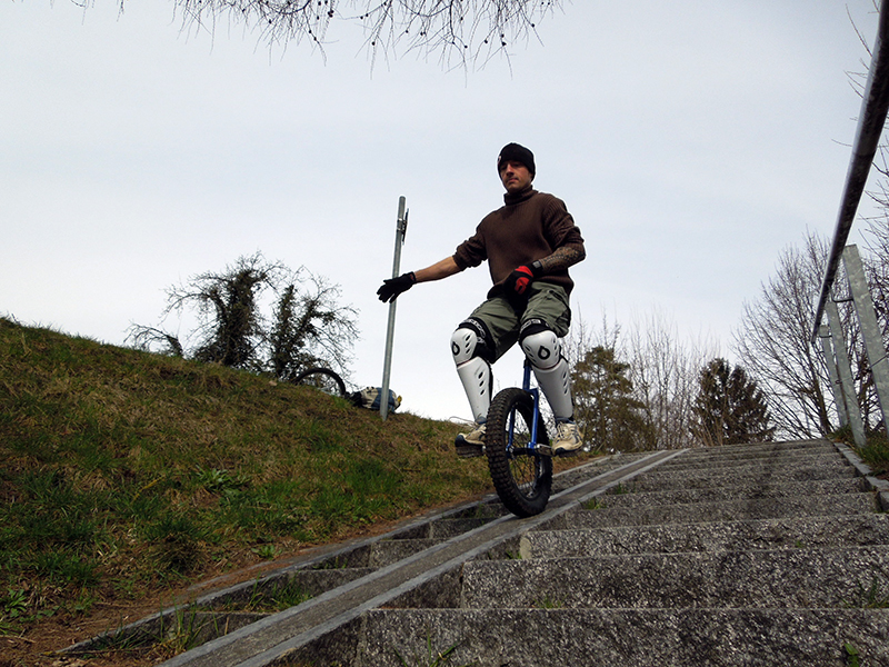 „Grundsätzlich bin ich eigentlich schon mit dem Virus Einrad aufgewachsen. Bereits mein Vater und Grossvater (der Gründer des antiken Zweirad-Museums in Oeschgen), fuhren und bauten selber Einräder. Als meine Beine endlich genügend lang waren, um auf eines der selbstgebauten 28“ Einräder zu sitzen, startete ich meine ersten Versuche.