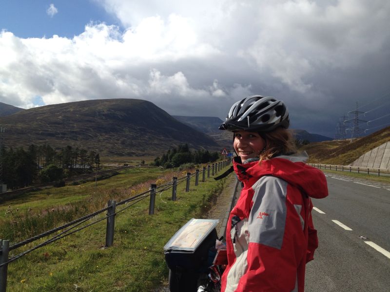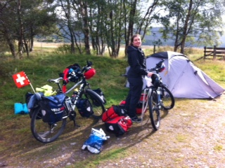 Der zweite Tag war «a day to remember», nahezu traumatisch: Beschwingt davon, dass wir ja schon so weit gekommen waren, strampelten wir ziemlich ambitiös den höchsten mit dem Velo befahrbaren Pass hinauf, ohne dies im Voraus wirklich zu wissen. Mit dem unerklärlich konstanten Gegenwind, dem kalten Regen und einer Autobahn gepflastert mit «Road kill» haben wir nicht gerechnet. Relativ müde und vor allem nass stellten wir in Rekordzeit unser Zelt auf, schlürften mit klammen Fingern eine Bouillon und fühlten uns, als wären wir in der Arktis. Nach drei Tagen und beinahe 300 km erreichten wir zu unserem Erstaunen auch schon Inverness und gönnten uns dort einen riesigen heissen Kaffee, der uns Füsse und Herz erwärmte 🙂