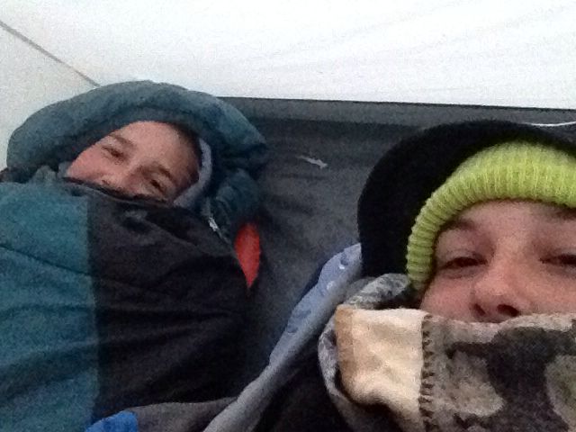 Der anstrengendste Teil des Tages steht dennoch bevor uns: Wie packen wir uns am besten für die kalte Nacht ein? Noëmis Technik lautet, nach diversen kalten Nächten (auch die zu Flavias Übel sehr knisternde Rettungsdecke nützte nichts!): Back to the roots, sie schläft wie ein Neandertaler im Fell, d.h. fast keine Kleider und dann schichtenweise Lagen aufbauen. Die dadurch wahrhaftig warmen Füsse sind morgens aber doch immer abgekühlt, was das Aufstehen dafür umso leichter macht. Man freut sich dann so richtig, die dauernassen Schuhe überzuziehen, die Beinmusklen anzuspannen und weiterzuziehen, bis einem das Füdli so weh tut, dass man wieder mal eine Pause einlegen darf.