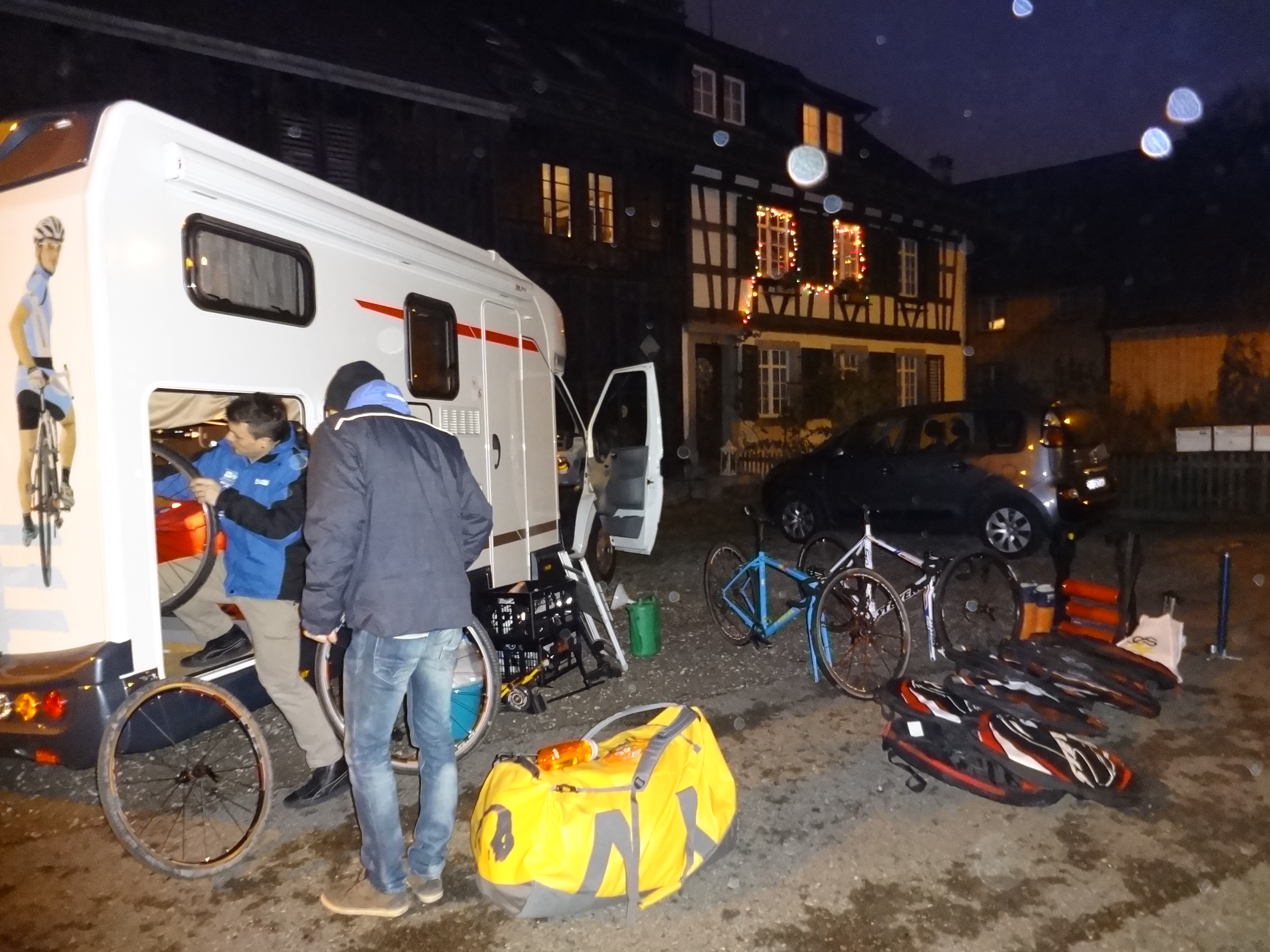 Wir starteten mit der Kategorie U23: grösseres Feld, aber keineswegs tieferes Niveau. Bereits im Juniorenalter kriegt man in Belgien gute Verträge, dass man es nicht mehr nötig hat eine Lehre zu absolvieren oder zu arbeiten – als U23-Fahrer schon gar nicht mehr. Ich durfte von einem belgischen Fahrer eine Sattelstütze ausleihen, er selber hatte vier Velos dabei, zusätzlich noch eins in Einzelteilen.
