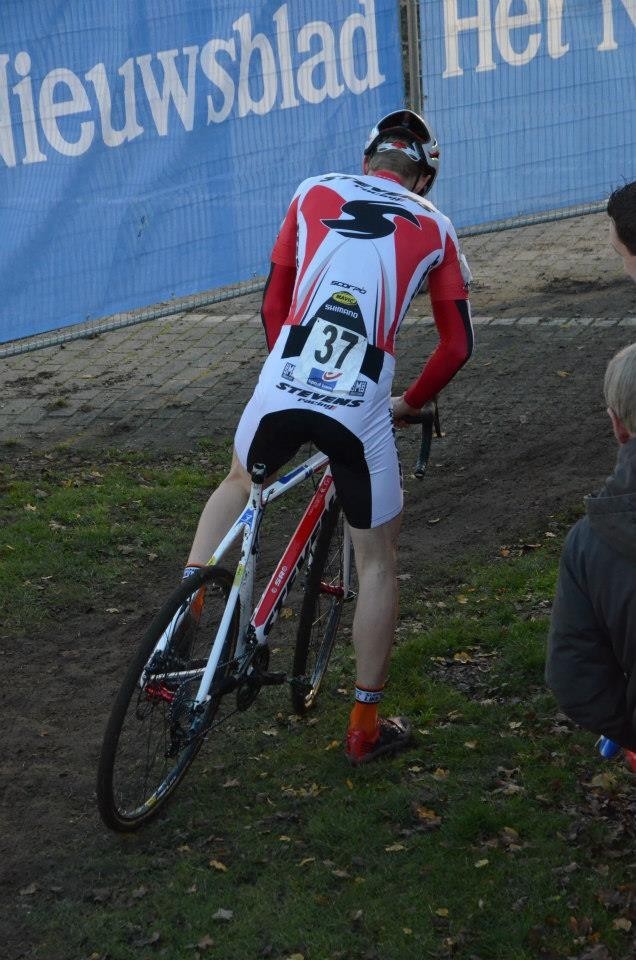 Die zwei Jungs musste ich ziehen lassen, konnte aber einen anderen ein- und überholen. Als ich in die dritte Runde ging, hatte ich bereits zwei Minuten Rückstand auf die Spitze, was für Crossrennen relativ viel ist. Ich fuhr mein Rennen, stets nahe am roten Bereich, als es in einer kleinen Abfahrt krachte: Ich wollte mich setzen und fiel ins Leere – gebrochene Sattelstütze, na toll. Dass es auch noch kurz nach der Wechselzone passieren musste, vereinfachte die Sache nicht gerade. Ich verlor einiges an Zeit und an Plätzen, bis ich das Velo wechseln konnte. Als ich beim Ziel durchfuhr nahm man mich aus dem Rennen, die 80-Prozent-Regel kam zum Zug. (Wenn man als Fahrer mehr als 80% auf den ersten verliert, wird man aus dem Rennen genommen, damit die Spitze niemanden überrunden muss und freie Fahrt hat.) Als 30. wurde ich klassiert, die ersten 25 sind allesamt Profis.