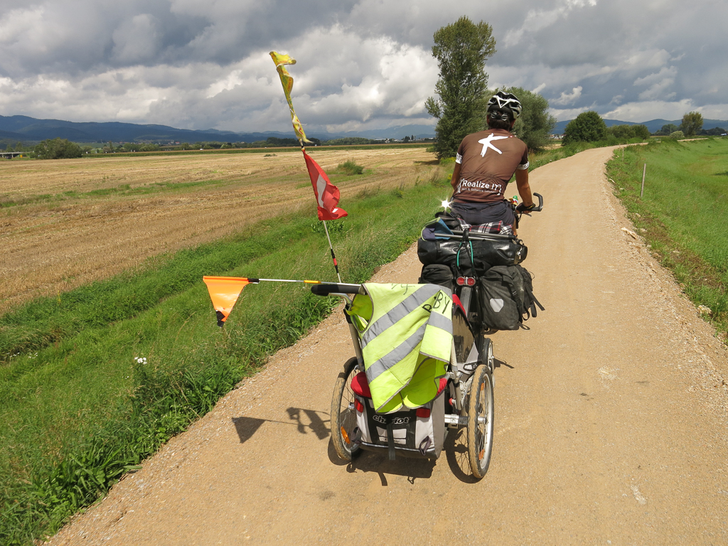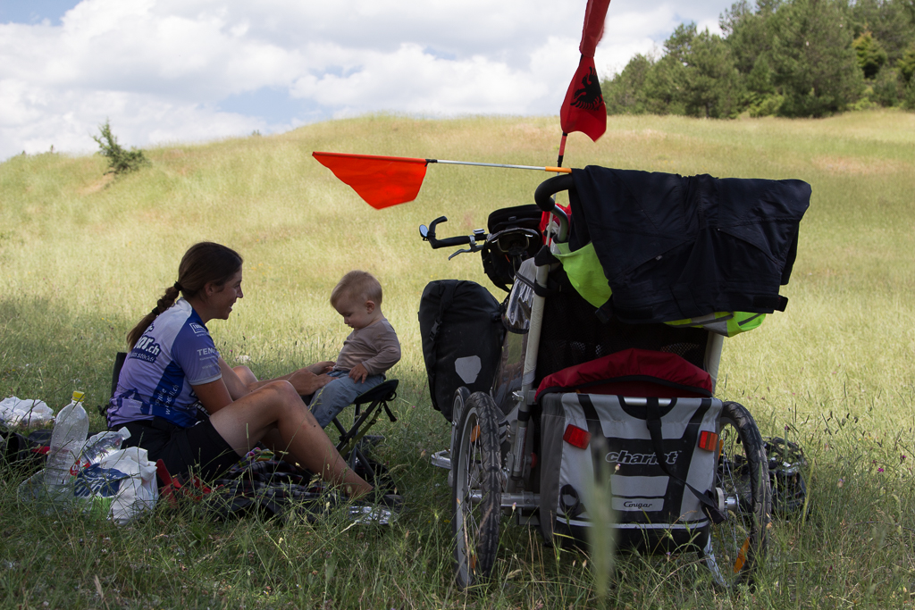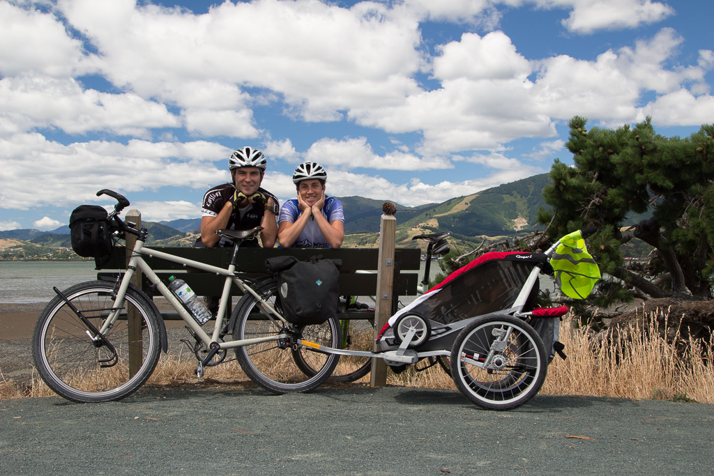 Sie starteten im Kaukasus und fuhren Richtung Nepal. Kurz vor dem Start zeichnete sich aber ab, dass sie nicht zu zweit, sondern zu dritt unterwegs sein würden – Andrea war schwanger! Schliesslich kommt ihr Sohn Timo in Neuseeland zur Welt. Zwangsläufig gabs auch bei der Veloflotte Nachwuchs – ein Anhänger musste her 😉