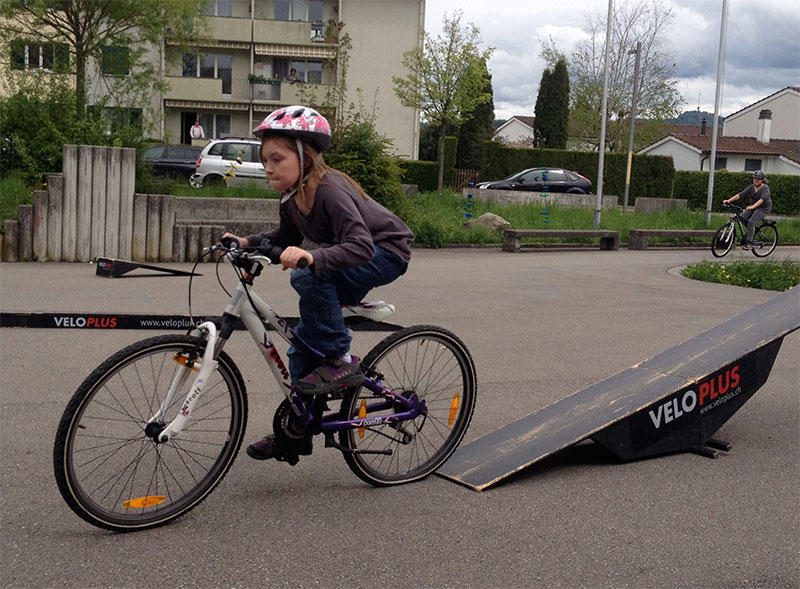 Veloplus fördert die Geschicklichkeit auf dem Velo gerne und stellt deshalb pro Laden einen Funpark zur Verfügung, der kostenlos ausgeliehen werden kann – etwa für den Schulunterricht oder ein Dorffest.