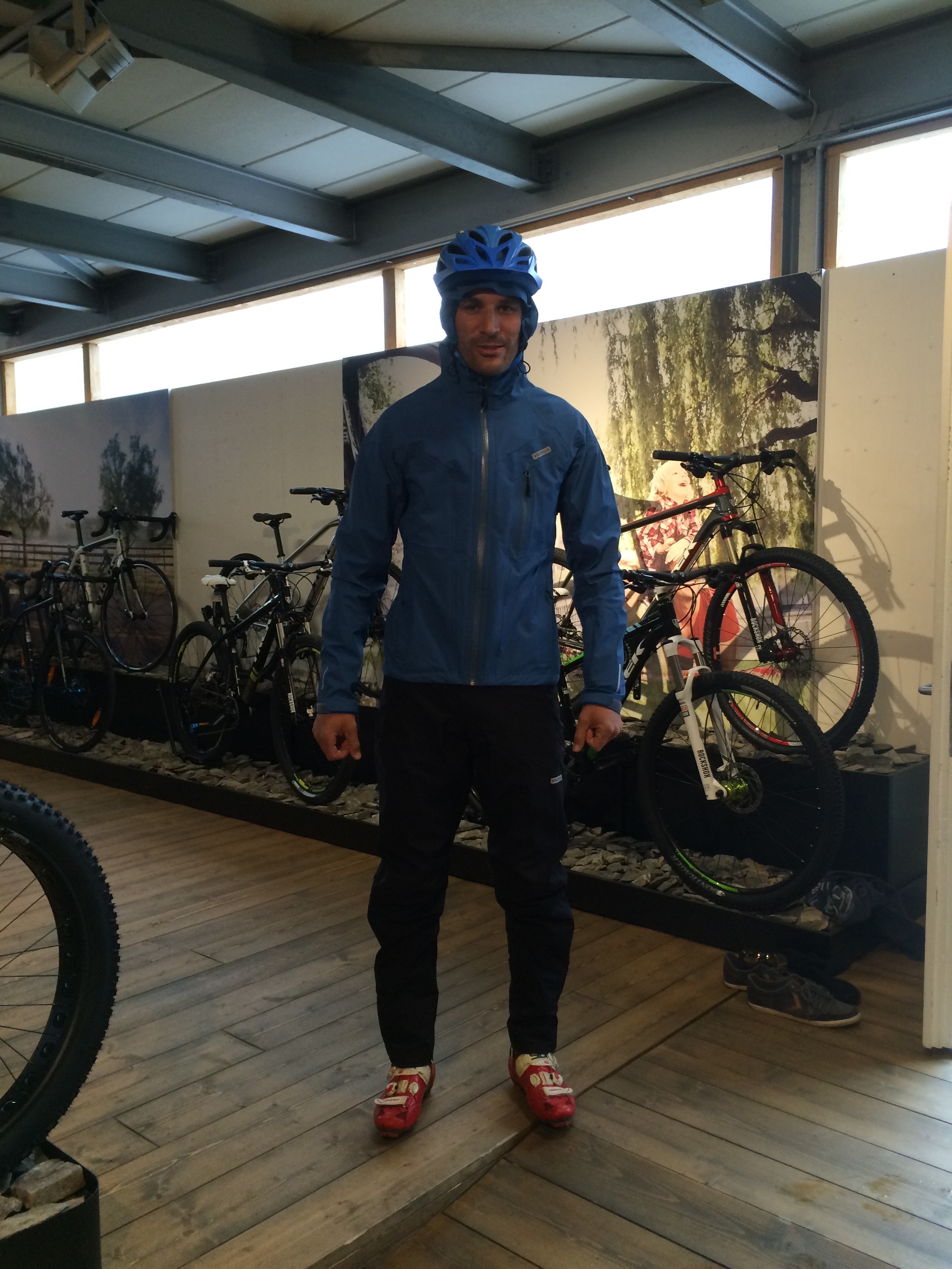 Wir haben die Monsun Jacke und Hose überarbeitet und natürlich diversen Tests unterzogen – unter anderem in unserem Monsun-Labor. Dafür hat sich freundlicherweise Produktmanager Michi Voser zur Verfügung gestellt – und wie Ihr auf den Bildern sehen könnt, ist er unter den neuen Monsun-Klamotten trockengeblieben 🙂