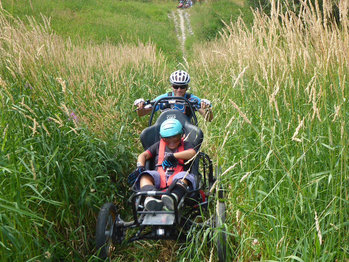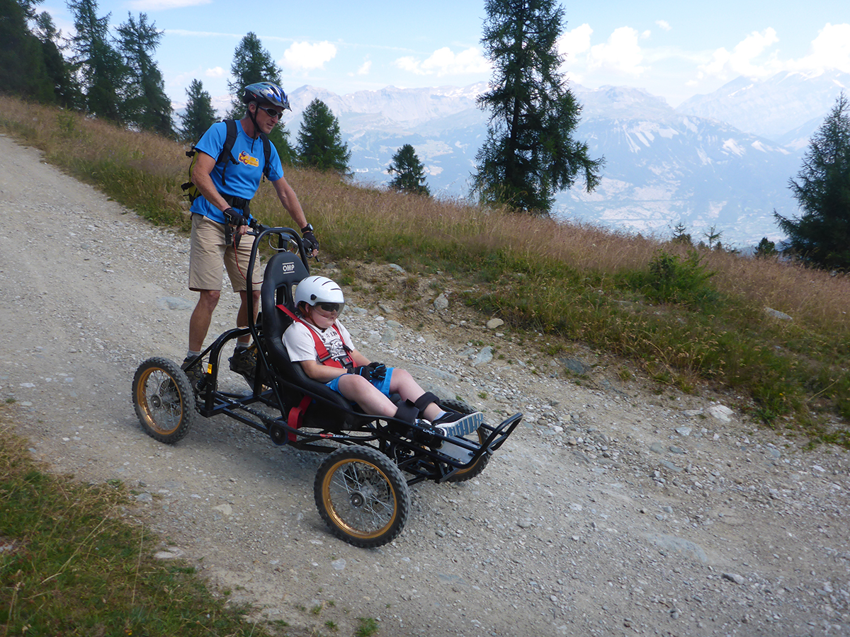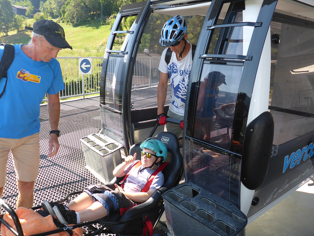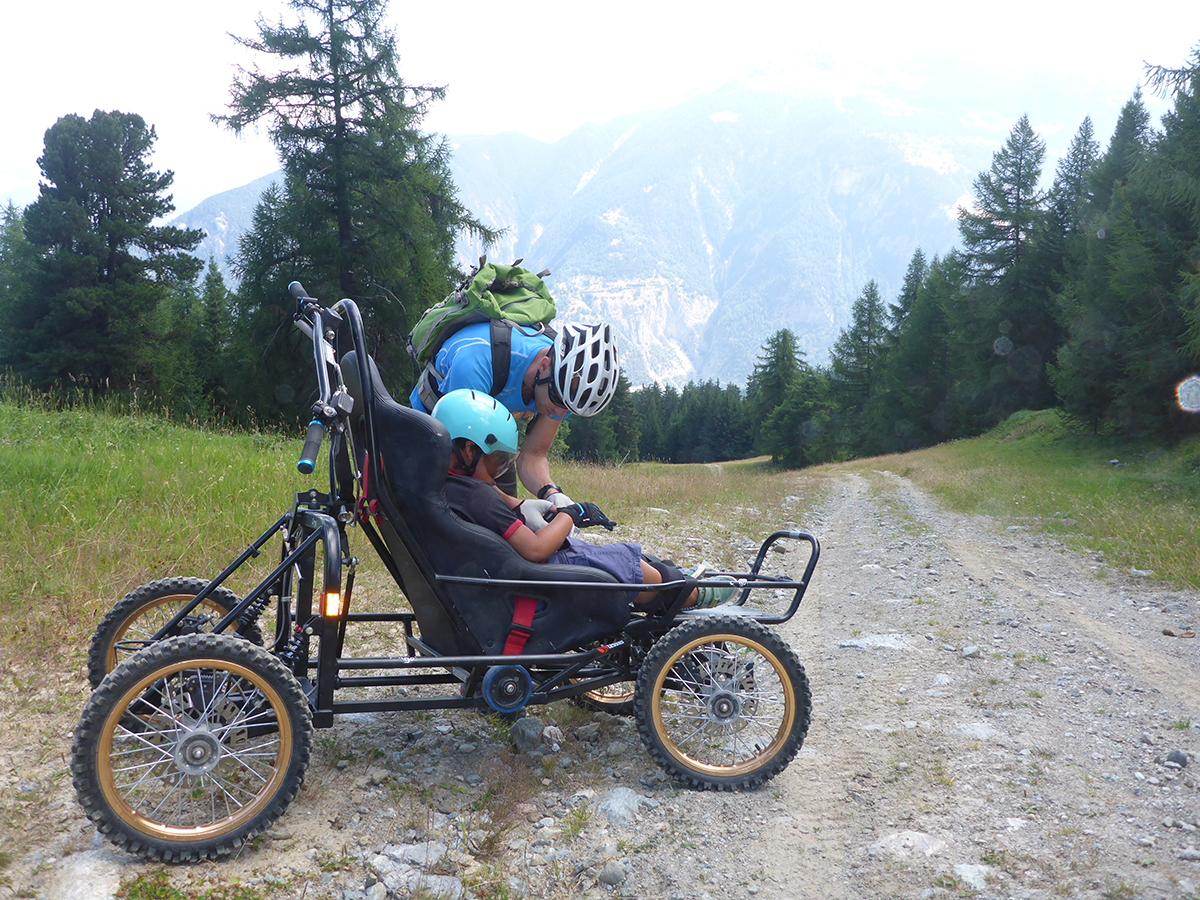 Damit die Berge möglichst allen zugänglich sein sollen, fördert der Verein Différences Solidaires Bergsport für Menschen mit Behinderung – zum Beispiel mit einem Gefährt namens Cimgo. Damit die Passagiere in den Cimgos sicher unterwegs sind, haben wir den Verein mit Helmen unterstützt.