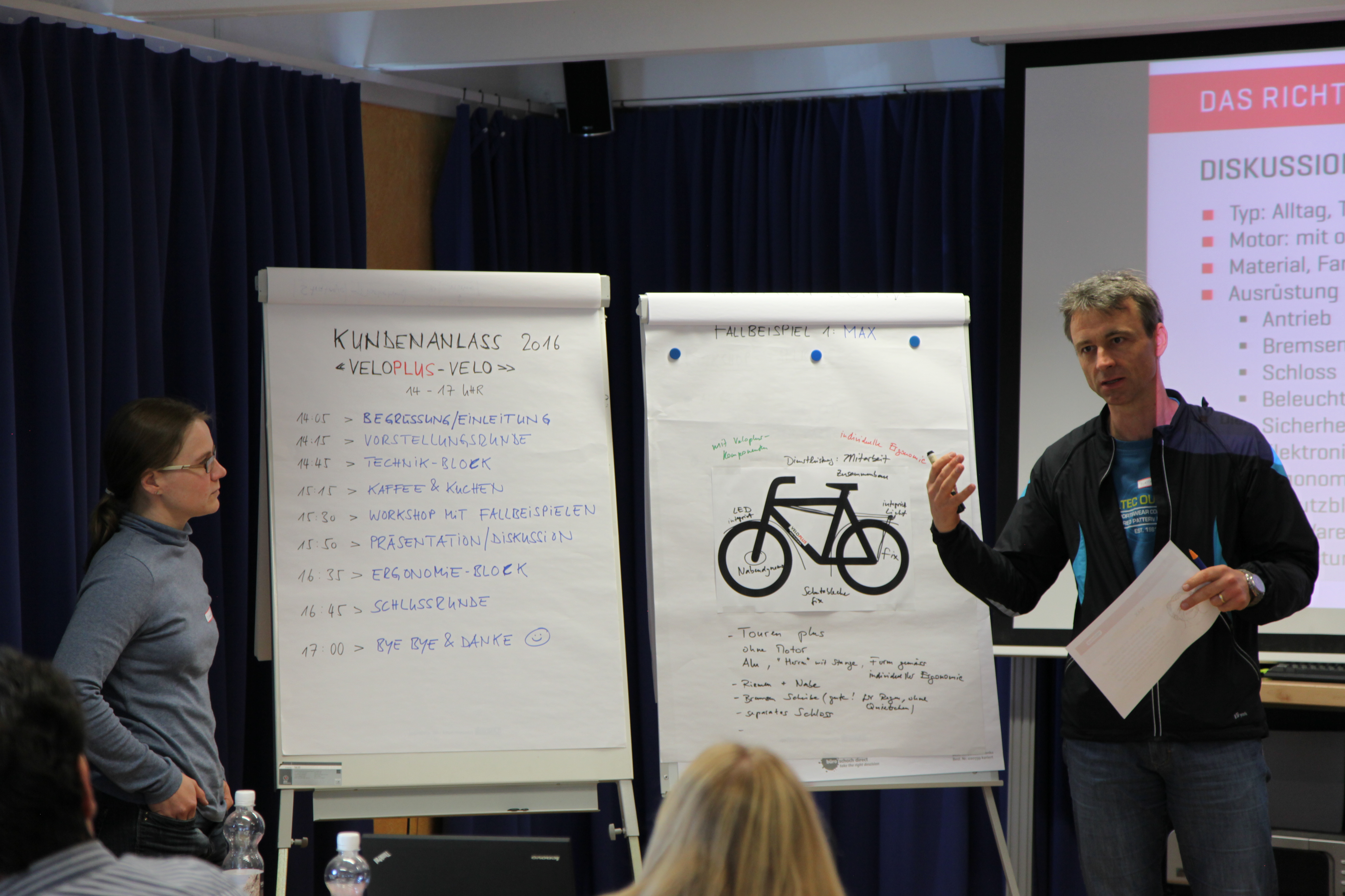 Im Kundenmagazin AKTUELL haben wir die Idee zur Entwicklung eines Veloplus-Velos vorgestellt und eine Umfrage lanciert. Einige Kundinnen und Kunden haben wir zum alljährlichen Kundenanlass eingeladen, um das Thema an einem Workshop vertieft zu diskutieren.