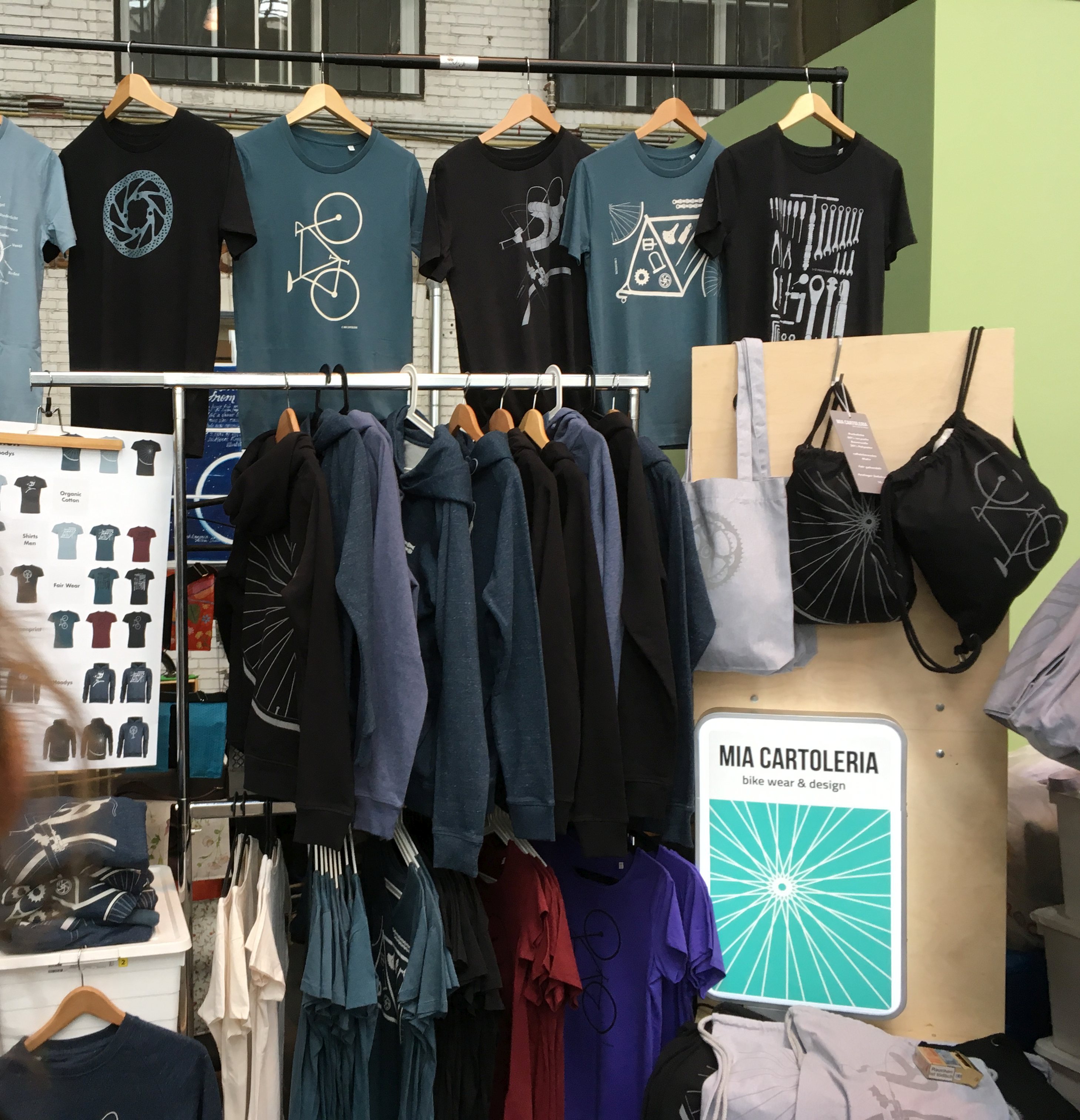 Dass der Veloverkehr in Berlin gemäss offiziellen Zahlen in den letzten 10 Jahren um über 1/3 angestiegen ist, war in den beiden Hallen deutlich spürbar: Es strömten nicht nur zahlreiche interessierte Velofahrer an die Ausstellung, es waren auch viele junge Berliner Rahmenmanufakturen und Zubehörhersteller mit eigenen Ständen vertreten. Für sie war die Veloberlin eine Gelegenheit, sich einem breiteren Publikum zu zeigen und ihre Produkte direkt ab Stand zu verkaufen. Dazu gehört beispielsweise der Tourenvelo-Hersteller Fern und die befreundete Taschenmarke Gramm, ein Spezialist für besonders leichtes Tourengepäck. Aufgefallen sind auch mehrere lokale Anbieter von liebevoll gemachten Accessoires wie das Atelier K.W.D., das sich auf Upcycling-Produkte fokussiert oder der Mode- und Designanbieter Mia Cartoleria.