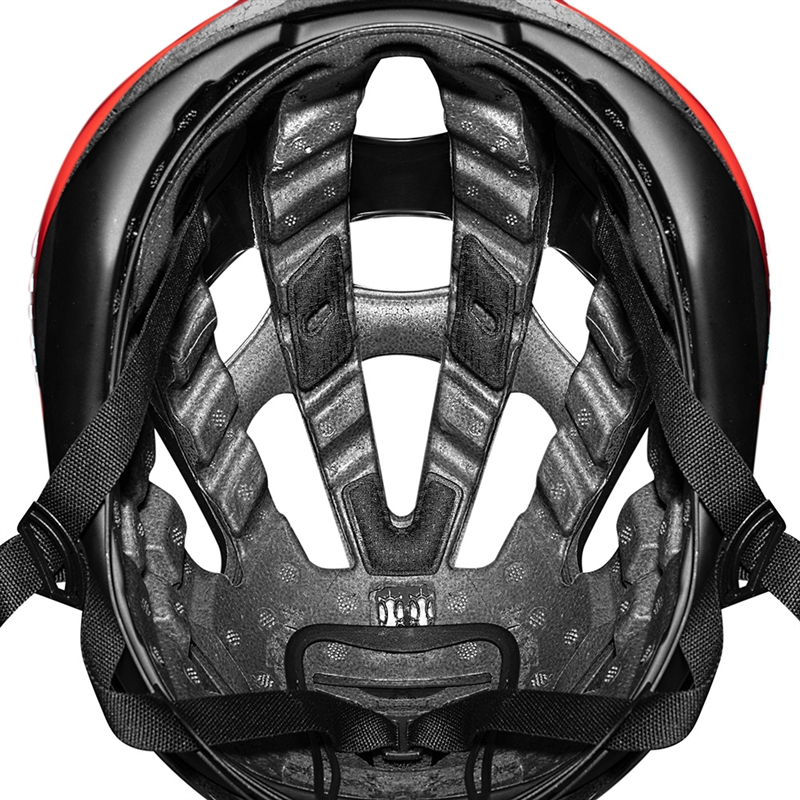 Die Aussenschale ist verstärkt mit dem bruchsicheren, halbtransparenten AURA-Verstärkungsbügel. Neues 3-Weg-Roc Loc 5+ Air-Fit Anpassungssystem, das in Kombination mit dem federleichten Riemenmaterial und der extraschmalen Steckschnalle für einen Top-Tragkomfort sorgen. Frontöffnungen mit Pads garantieren einen sicheren Halt der im Helm eingesteckten Sonnenbrille und die Hinterkopfhalterung lässt das Tragen eines Pferdeschwanzes zu.