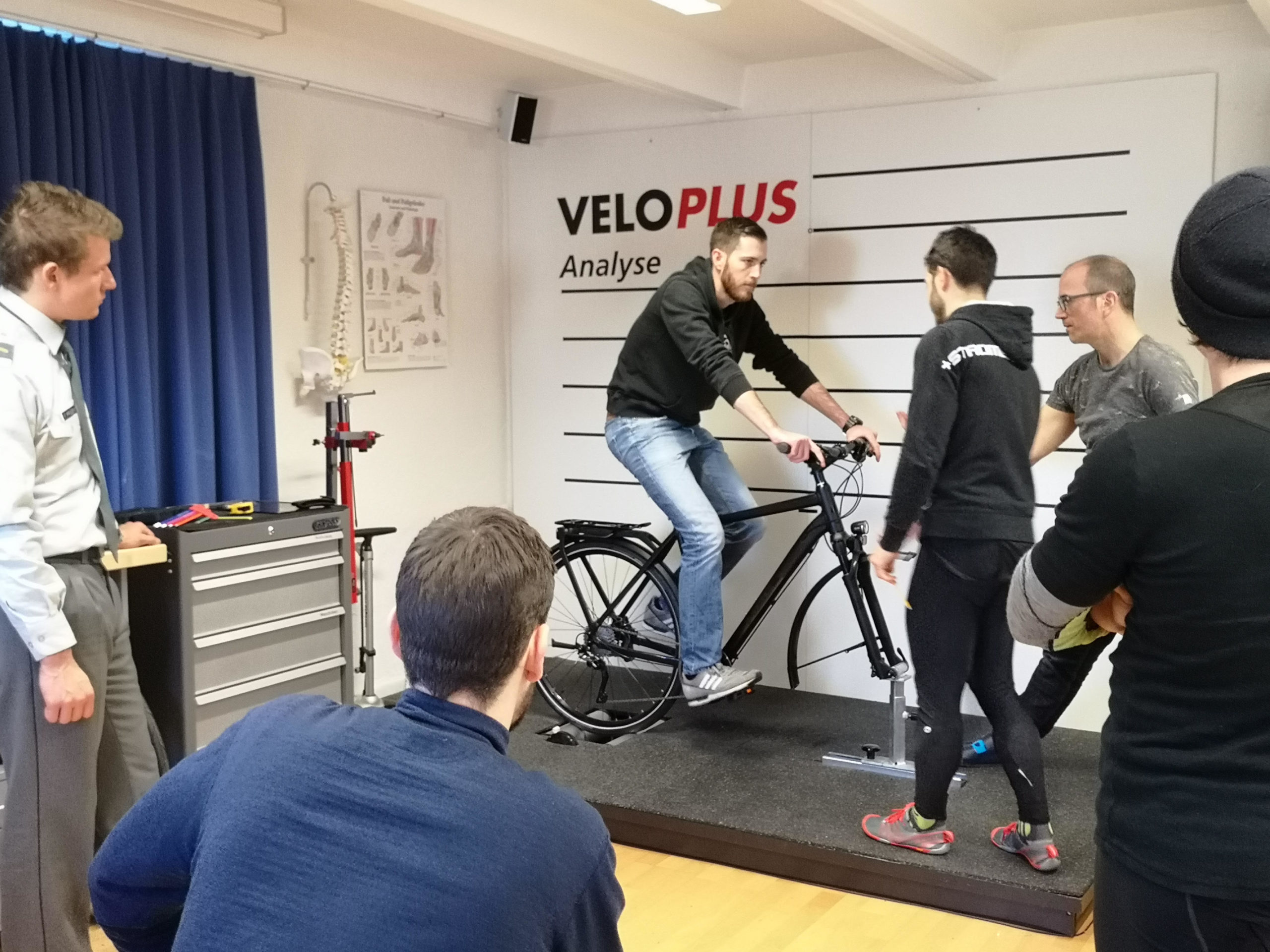 Später machen sich alle an ein praxisnahes Beispiel und üben damit die Situation mit Kunden. Dazu findet man bei uns im Schulungsraum eine Veloanalysestation. Hier geht es darum, für einen fiktiven Kunden, welcher durch einen Mitarbeiter gespielt wird, den Lenker und die Bremse richtig einzustellen. Das wichtigste dabei ist, dass man dem Kunden möglichst viele Fragen stellt und auf sein Gefühl eingeht. Ganz wichtig ist auch, dass die beiden Seiten des Lenkers individuell eingestellt werden, da ein Mensch auch nicht auf beiden Seiten identisch ist. Nach einem Schulungstag ist das Wissen der Teilnehmenden aufgefrischt und die Beratung in den Läden kann starten.