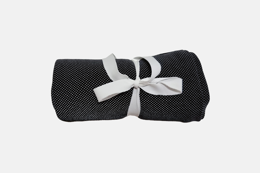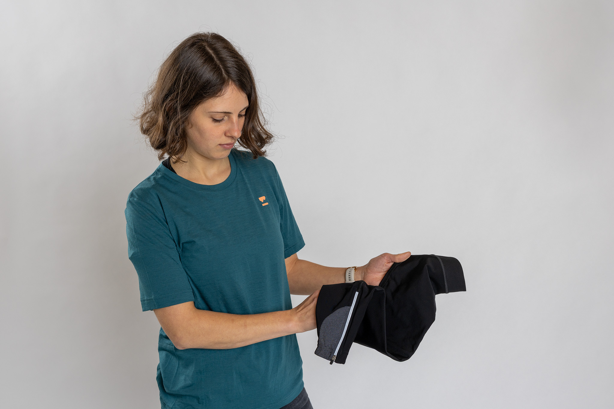 In Italien ist Produktmanagerin Chiara Tröndle dann fündig geworden. Auch die Verpackung für die neuen Produkte überliess sie nicht dem Zufall. Die Verpackung soll zwar unbedingt eine Schutzfunktion für das Produkt erfüllen, ansonsten soll diese aber auf ein Minimum reduziert werden. Gemeinsam mit dem italienischen Produzenten kam die Idee auf, für die Verpackung ein Stückchen Reststoff zu verwenden. Dieses Stoffband bleibt in der Produktion übrig und hat mit dem Zusammenhalten der Arm-, Bein- und Knielingen nun seine neue Bestimmung gefunden.