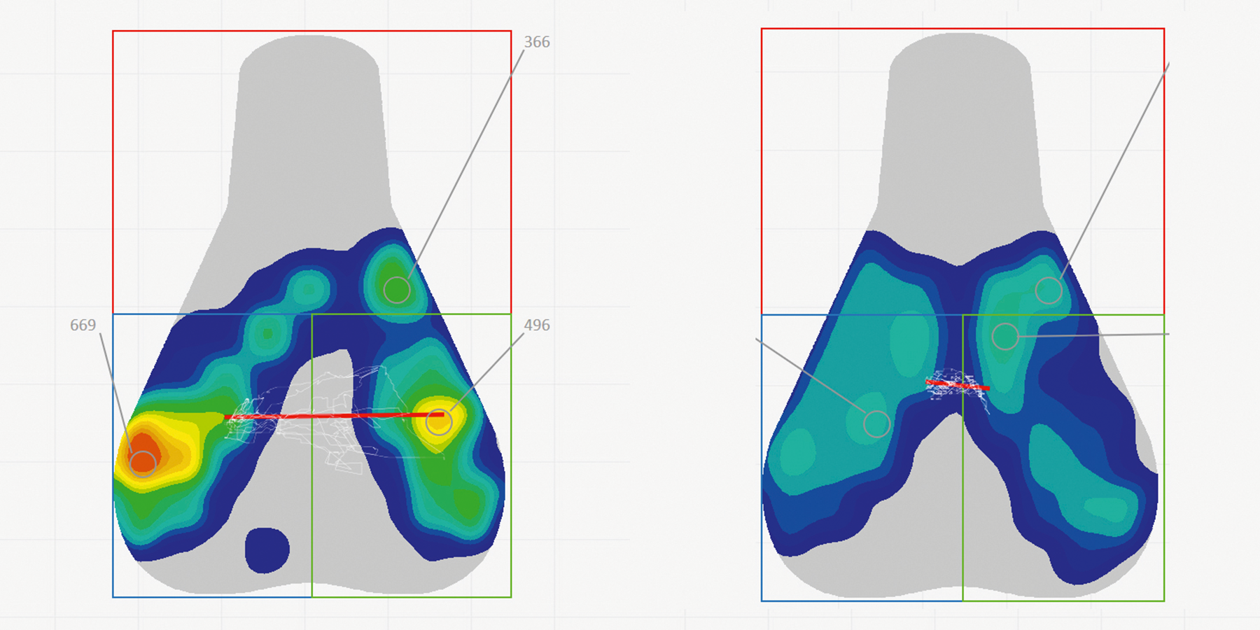 Per Sattelanalyse wird das Druckbild verschiedener Personen bestimmt. Eine mit 60 hochempfindlichen Drucksensoren ausgestattete Messfolie gibt Aufschluss darüber, an welchen Stellen das Muster drückt. Aus­gehend von diesen Erkenntnissen macht sich unsere Sattel­spezialistin ans Werk. Von Hand werden die Problembereiche ­abgefräst und der ­Sattel möglichst bequem gestaltet. Im Anschluss wird das Druckbild bei den gleichen Personen erneut ermittelt und mit den ersten Ergebnissen verglichen. Passt die Form, steht die kreative Arbeit an: Ein Design und ein Name müssen her, damit der Sattel zum Leben erweckt wird.