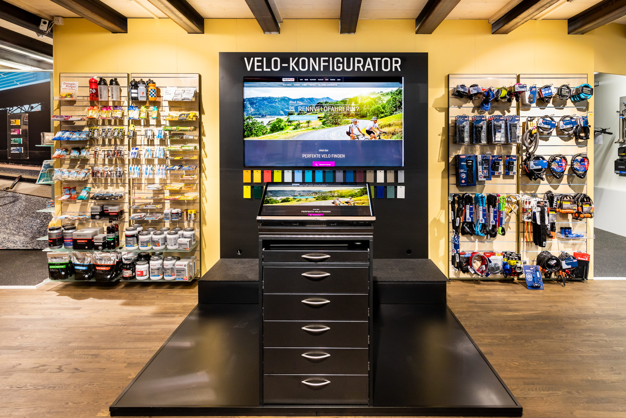 Unsere Mitarbeitenden helfen dir bei den Einstellungen am Konfigurator und beraten dich bezüglich der richtigen Komponentenwahl, Rahmengrösse und allen weiteren Anpassungen. In den Veloplus-Läden stehen auch viele der Modelle für eine Probefahrt zur Verfügung. Wenn du zufrieden bist mit deiner Wahl, kann das Velo direkt im Laden bestellt werden.
