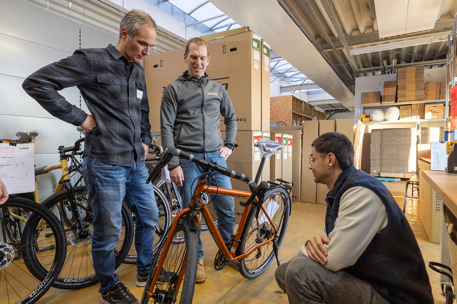 mit angeschraubten Gepäckträgern. Wenn es Pässe runterging, hat das wild geklappert und war alles andere als ideal,» erinnert sich Oliver. In solchen Situationen stiessen ihre Velos an die Grenzen. «Uns war klar, wir können bessere Produkte machen. Das war ein Prozess – im Herbst 2004 kam der Punkt, an dem ich gesagt habe: Okay, let’s do it.»