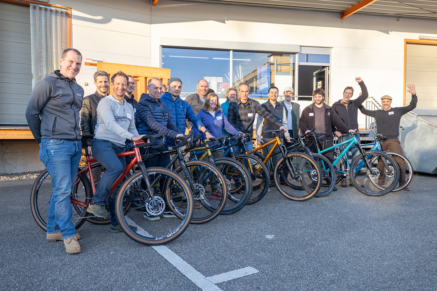 Im Dezember 2025 reisten Veloverantwortliche und Ladenleitende von Veloplus zum Hauptsitz von Tout Terrain in Gundelfingen. Das Ziel laut Velo-Produktmanager Michael Voser war, die DNA von Tout Terrain aufzunehmen. «Wir wollen verstehen, wie sie funktionieren, insbesondere die Manufaktur ». Bei Tout Terrain wird jedes Velo auf Bestellung individuell hergestellt. Eine Person pulvert den Rahmen. Dieser geht zu einem Mechaniker, der das Velo fertig aufbaut.