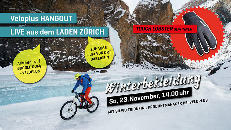 Mach mit beim nächsten Veloplus Hangout und diskutiere mit unserem Produktmanager Textil Silvio über Velobekleidung für den Winter. Zudem gewinnt ein/e Teilnehmer/in den TOUCH LOBSTER Handschuh.